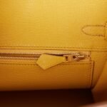 The interior is lined withJaune Ambre chevre and has one zip pocket with an Hermès engraved zipper pull and an open pocket on the opposite side.