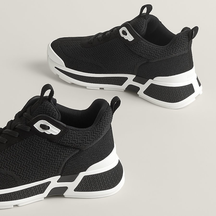 Sneaker in herringbone knit and suede goatskin.