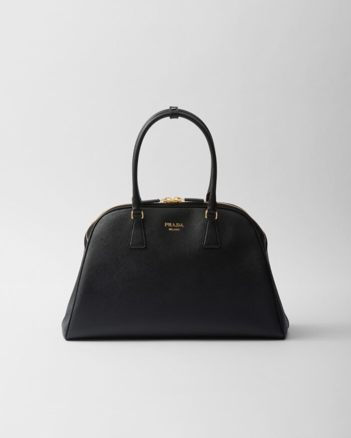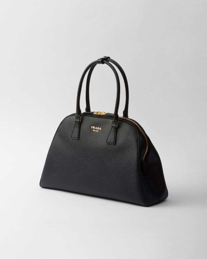 This bag with an elegant and sophisticated design and simple yet refined details emphasizes the distinctive crosshatch texture of Saffiano leather with a waxed finish. Brighten by the metal hardware, the accessory has a spacious interior with pockets and convenient leather handles. The lettering logo embossed on the front completes the versatile and timeless design, an expression of exceptional artisanal know-how.