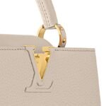 Fashioned from full-grain Taurillon leather, the now-classic Capucines BB handbag displays a host of House signatures:leather-wrapped LV Initials, jewel-like handle mounts inspired by historic trunks, and a distinctive flap with a Monogram Flower motif. Timelessly elegant, this charming model can be carried by hand or worn cross-body on its detachable strap. First launched in 2013, the Capucines is named for the Parisian street where Louis Vuitton first opened shop, in 1854.