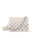 The LV Ski collection offers this brand new edition of the Coussin PM, ready for mountain getaways and beyond. Crafted from lamb leather, it is embossed with the House’s signature Monogram in a unique gradient finish and embellished with a bi-galvanized chain. A key shape for the season, it is sized to fit the essentials, including a wallet, Smartphone and lipstick.