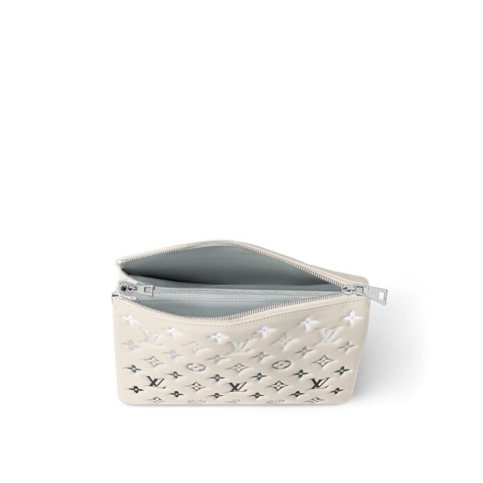 The LV Ski collection offers this brand new edition of the Coussin PM, ready for mountain getaways and beyond. Crafted from lamb leather, it is embossed with the House’s signature Monogram in a unique gradient finish and embellished with a bi-galvanized chain. A key shape for the season, it is sized to fit the essentials, including a wallet, Smartphone and lipstick.