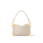 Crafted from grained calfskin leather with a gold-color S-lock and corners, the Side Trunk PM takes its inspiration from the House’s vintage trunks. A detachable leather handle and a removable and adjustable leather strap give carry options. The Side Trunk fits a wallet, large smartphone, keys, and lipstick.