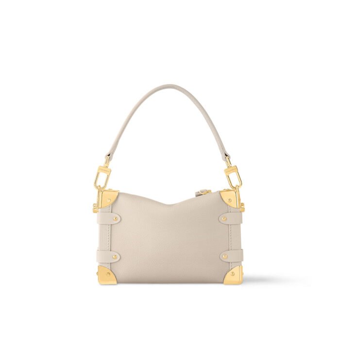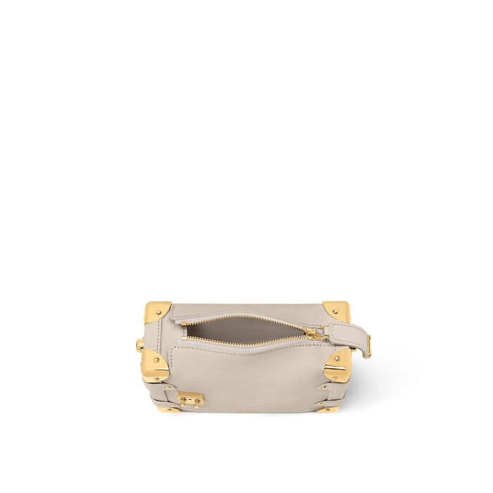 Crafted from grained calfskin leather with a gold-color S-lock and corners, the Side Trunk PM takes its inspiration from the House’s vintage trunks. A detachable leather handle and a removable and adjustable leather strap give carry options. The Side Trunk fits a wallet, large smartphone, keys, and lipstick.