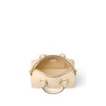 One of the House’s classic silhouettes, the Speedy Bandoulière 20 handbag takes on a timeless elegance in cream-color Monogram Empreinte leather with matching microfiber lining. The bag’s unique lines and two top handles evoke Louis Vuitton’s travel bags from the early 20th century. A removable chain-and-leather strap enables comfortable shoulder and cross-body carry.