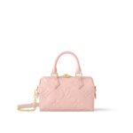 The Speedy 20 Bandoulière handbag is made from Monogram Empreinte leather in a soft pastel colorway. The bag’s unique shape is inspired by the House’s Speedy travel bag from the 1930s. A removable and adjustable chain-strap enables shoulder wear while the two top handles allow hand carry.