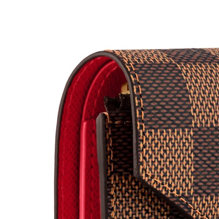 The Victorine wallet in Damier Ebene canvas is a compact, envelope-style design which opens out to reveal a range of practical features, including space for bills and cards, and a zipped coin pocket on the side. Its grained-leather lining adds a touch of femininity.