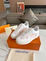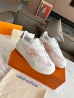 This LV Groovy platform sports shoe is made of cowhide with Monogram patterns embossed on the surface, and it combines a 1970s-style upper with a large rubber outsole. The laces are decorated with Monogram flowers, and the outsole also features Monogram patterns. The Louis Vuitton logo is embedded in the tongue.