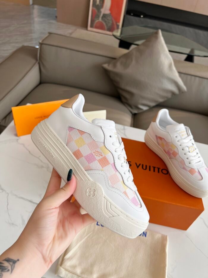 This LV Groovy platform sports shoe is made of cowhide with Monogram patterns embossed on the surface, and it combines a 1970s-style upper with a large rubber outsole. The laces are decorated with Monogram flowers, and the outsole also features Monogram patterns. The Louis Vuitton logo is embedded in the tongue.