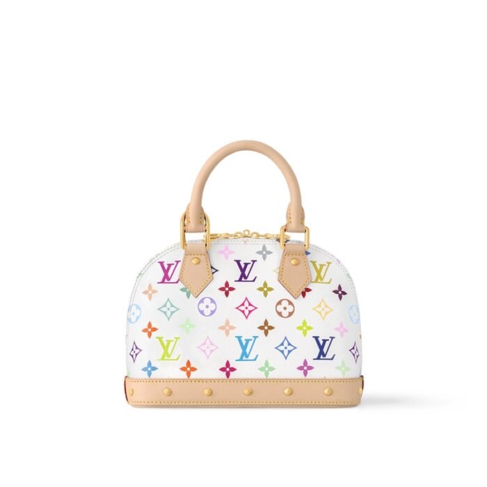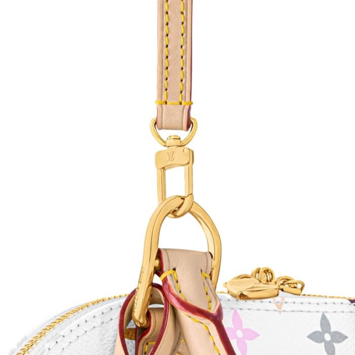 Originally inspired by a 1930s Art Deco design, this edition of the Alma BB has a celebratory spirit in the Louis Vuitton x Murakami collection’s multicolored Monogram coated canvas, which draws on the Japanese artist’s playful palette. The House’s natural cowhide leather adds an emblematic touch to the refined Toron top handles, the bottom, the removable strap, and the exclusive LV x TM keybell.