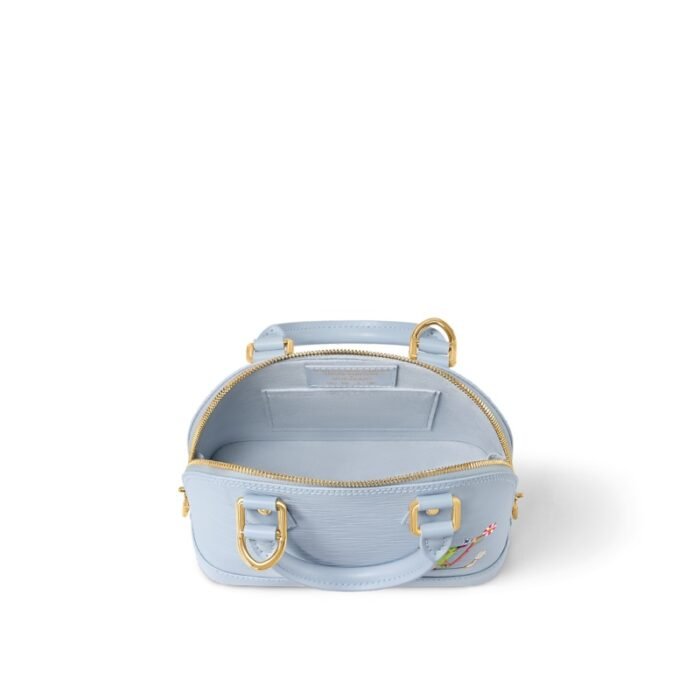 Statement signatures from the re-edition of the Louis Vuitton x Murakami collection refresh the iconic Alma BB handbag with a spirited twist. Crafted from Epi leather, the front is embellished with a playful reimagining of the LV Initials in the Japanese artist’s vernacular superflat style, which is complemented by a removable Panda charm in bold tones. The elegant Art Deco-inspired design is complete with two top handles, a removable strap and a golden padlock detail.