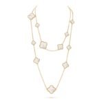 Magic Alhambra long necklace, 16 motifs, 18K yellow gold, white mother-of-pearl.