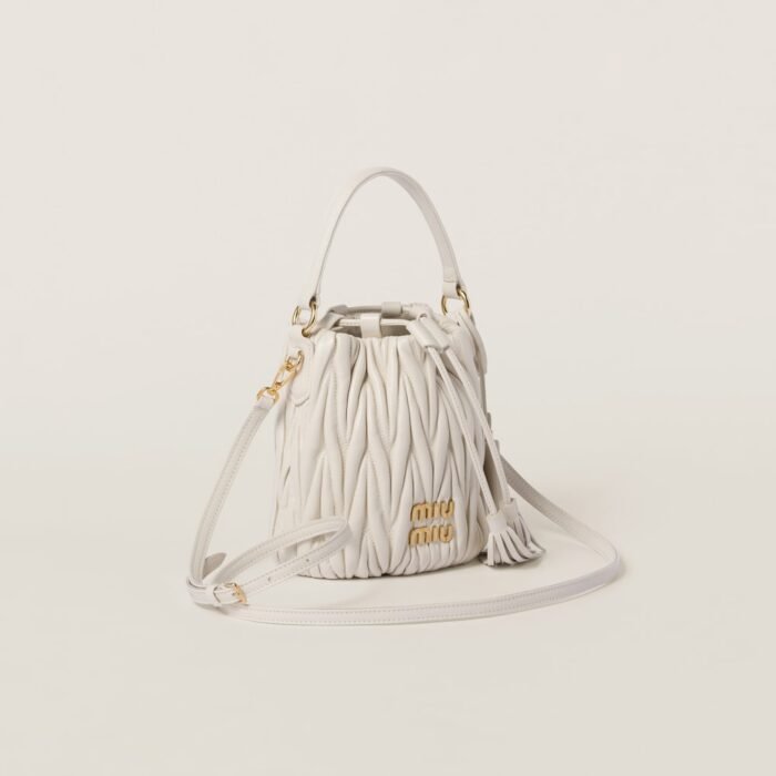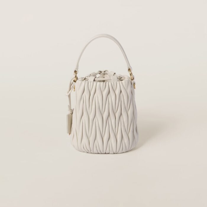 Fine matelassé workmanship revisits the classic bucket bag, giving it a three-dimensional, textured, and extremely sophisticated effect. The lettering logo on the front, which echoes different metallic finishes, stands out on the refined workmanship with an iconic and immediately recognizable touch. Dynamic, elegant lines and the adjustable and detachable shoulder strap help make the bag versatile, functional, and modern.