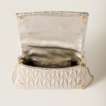 Precious matelassé workmanship enhances the compact lines of this nappa leather mini-bag thanks to a three-dimensional, textured, and extremely sophisticated effect. The lettering logo on the front echoing the different metallic finishes stands out against the refined motif with an iconic and instantly recognizable touch. The dynamic, elegant lines and the detachable and adjustable shoulder strap make the bag versatile, functional and modern.