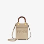 Mini Sunshine Shopper bag made of dove grey leather with hot-stamped FENDI ROMA and stiff tortoiseshell-effect plexiglass handles.