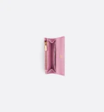 The My Dior Glycine wallet is distinguished by its compact and practical design. Crafted in hydrangea pink Cannage lambskin, it is enhanced by D.I.O.R. charms on the front. Accommodating all the essentials, the refined accessory will fit anywhere and can be paired with other My Dior creations.
