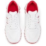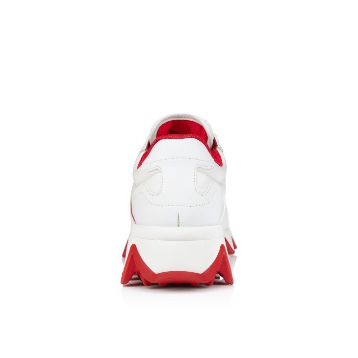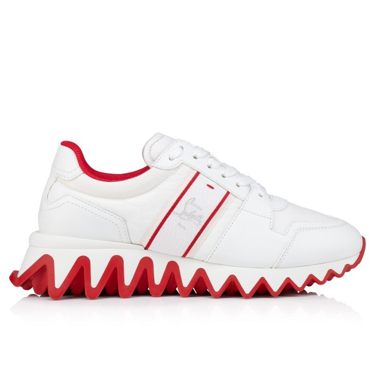The Nastroshark women’s sneaker has an audacious style. Inspired by the iconic Loubishark, it sits on a two-colour neoprene sole reminiscent of shark teeth. It is crafted from white calf leather and padded nylon. This sporty style features a signature Maison Christian Louboutin three-colour F.A.V. ribbon.