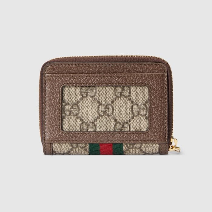 The world of Ophidia is enriched by the introduction of a petite card case that can also be used as a wallet. Crafted from the House’s monogram canvas, the style’s logo appeal is deepened by the green and red Web stripe and the Double G??archival details that celebrate Gucci’s history.
