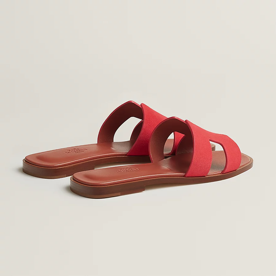 Sandal in suede goatskin with iconic ‘H’ cut-out and straight-cut edges.