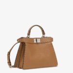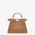 Small iconic Peekaboo ISeeU bag made with 556 tone on tone hand-sewn macro topstitches, an emblem of the iconic Selleria workmanship handed down through generations of Fendi artisans since 1925.