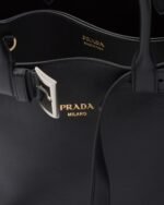 Clean lines and refined elements express Prada’s dual aesthetic that moves between simplicity and detail, functionality and elegance. This leather bag with nappa interior summarizes the stylistic codes of the brand in a pragmatic yet sophisticated design. The roomy silhouette is characterized by a multifaceted soul, expressed by the interchangeable belt that enriches the accessory with a unique and contemporary touch. The lettering logo, embossed in 22 karat gold leaf, decorates the modern, versatile style.