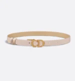 The Saddle belt has become a House icon and a wardrobe classic. It is offered in a reversible variation, thanks to its swivel mechanism. Crafted in trench beige smooth calfskin on one side and biscuit smooth calfskin on the other, it is embellished with an antique gold-finish metal CD buckle. The design also features two removable loops that can be worn in a tonal or contrasting fashion. The timeless accessory elegantly highlights the waist and will pair effortlessly with jeans, a skirt or a dress from the season.