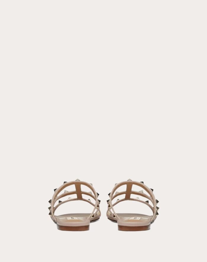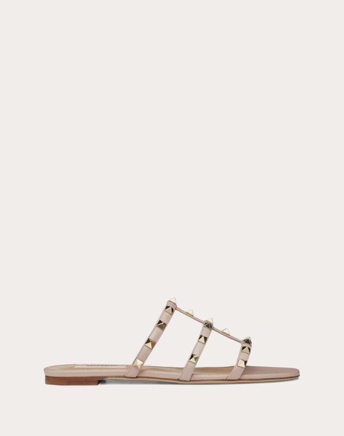 Valentino Garavani Rockstud flat sandal in calfskin leather.