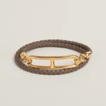 Swift calfskin braided double wrap bracelet with Roulis lock.