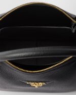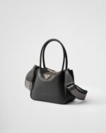 Contemporary and refined, this bag is crafted from textured leather with an inverted construction emphasizing its soft, rounded shape. The style, easy to carry by hand or over the shoulder, reveals a versatile soul, blending urban elegance and a sporty touch.