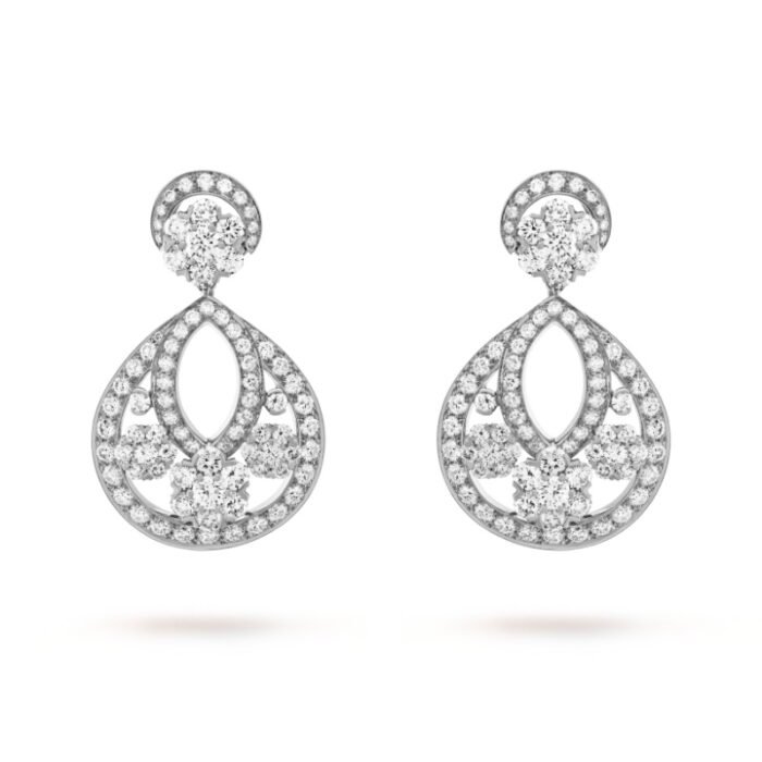Snowflake earrings, small model. Rhodium plated 18K white gold, diamonds.