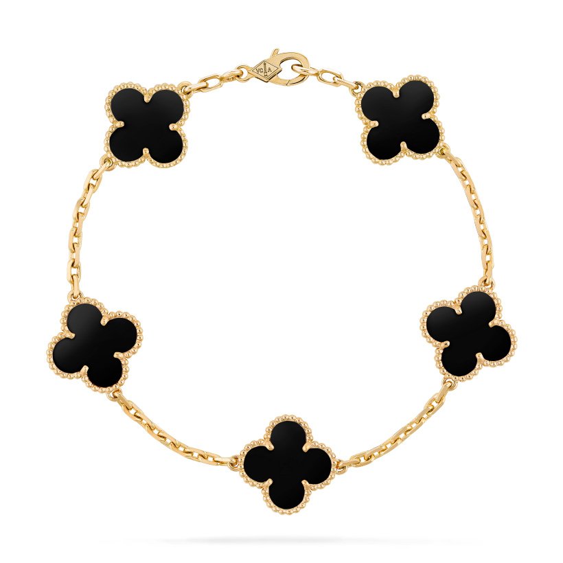 Vintage Alhambra bracelet, 5 motifs, 18K yellow gold, onyx.