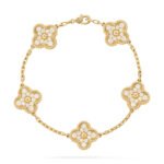Vintage Alhambra bracelet, 5 motifs, 18K yellow gold, round diamonds; diamond quality DEF, IF to VVS.