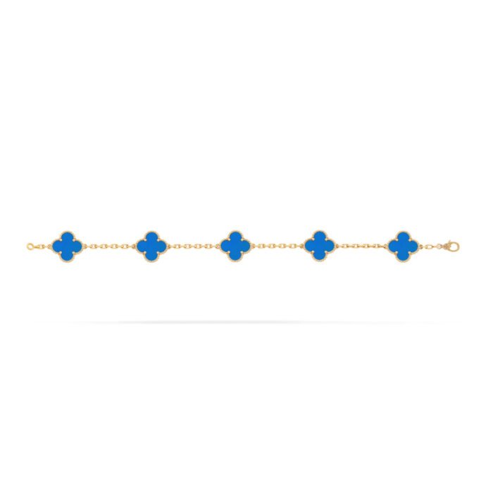Vintage Alhambra bracelet, 5 motifs, 18K yellow gold, blue agate.