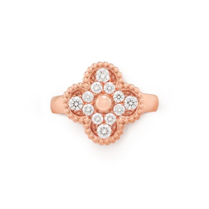 Vintage Alhambra ring, 18K rose gold, round diamonds; diamond quality DEF, IF to VVS.