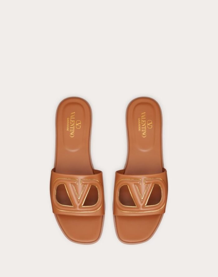 Valentino Garavani VLogo cut-out slide sandal in calfskin leather