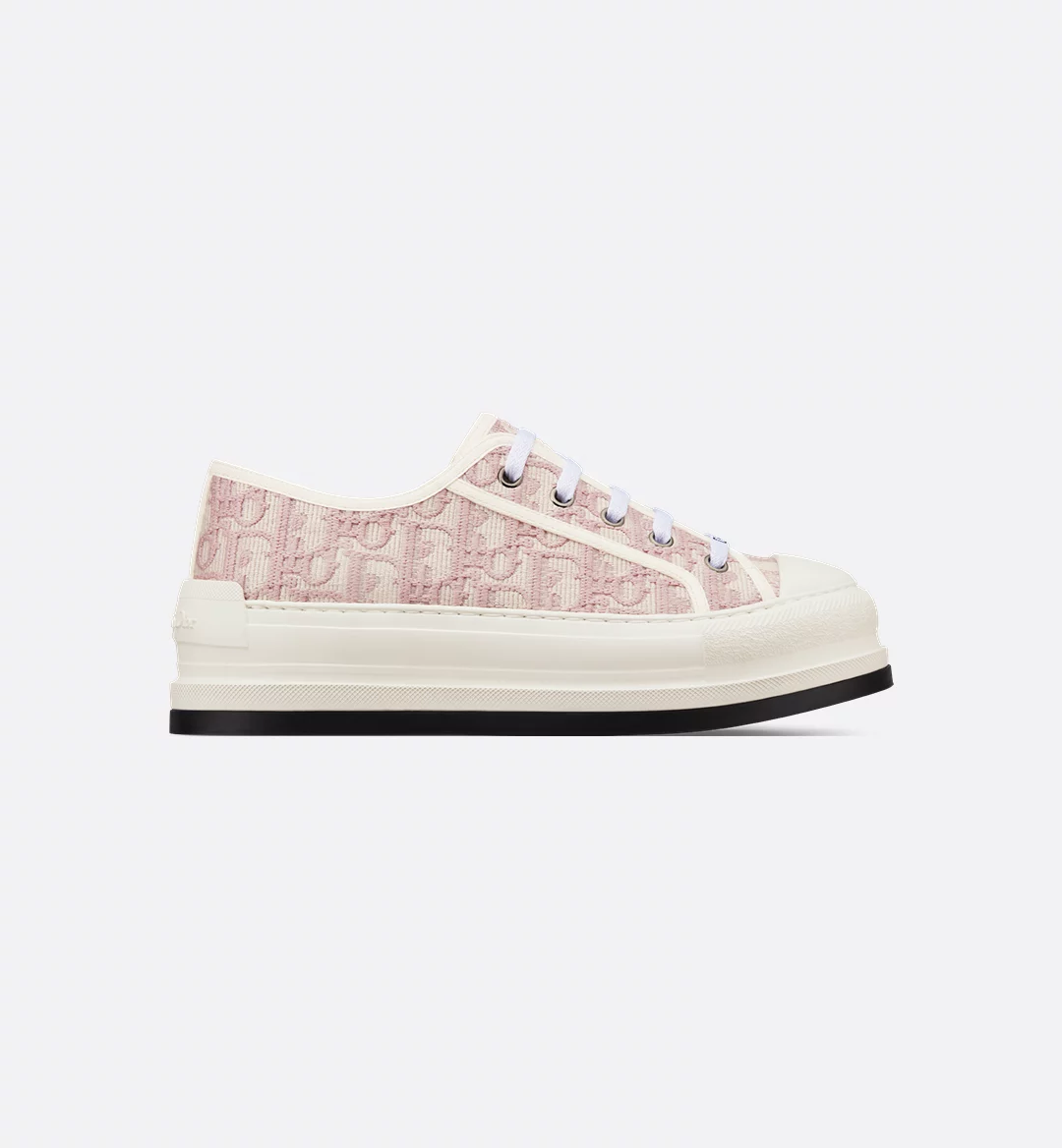 The Walk’n’Dior platform sneaker enhances the line with a modern creation. The nude Dior Oblique embroidered cotton upper is complemented by a comfortable thick sole, tongue and Christian Dior Paris laces. The sneaker will add a contemporary touch to any laid-back look.