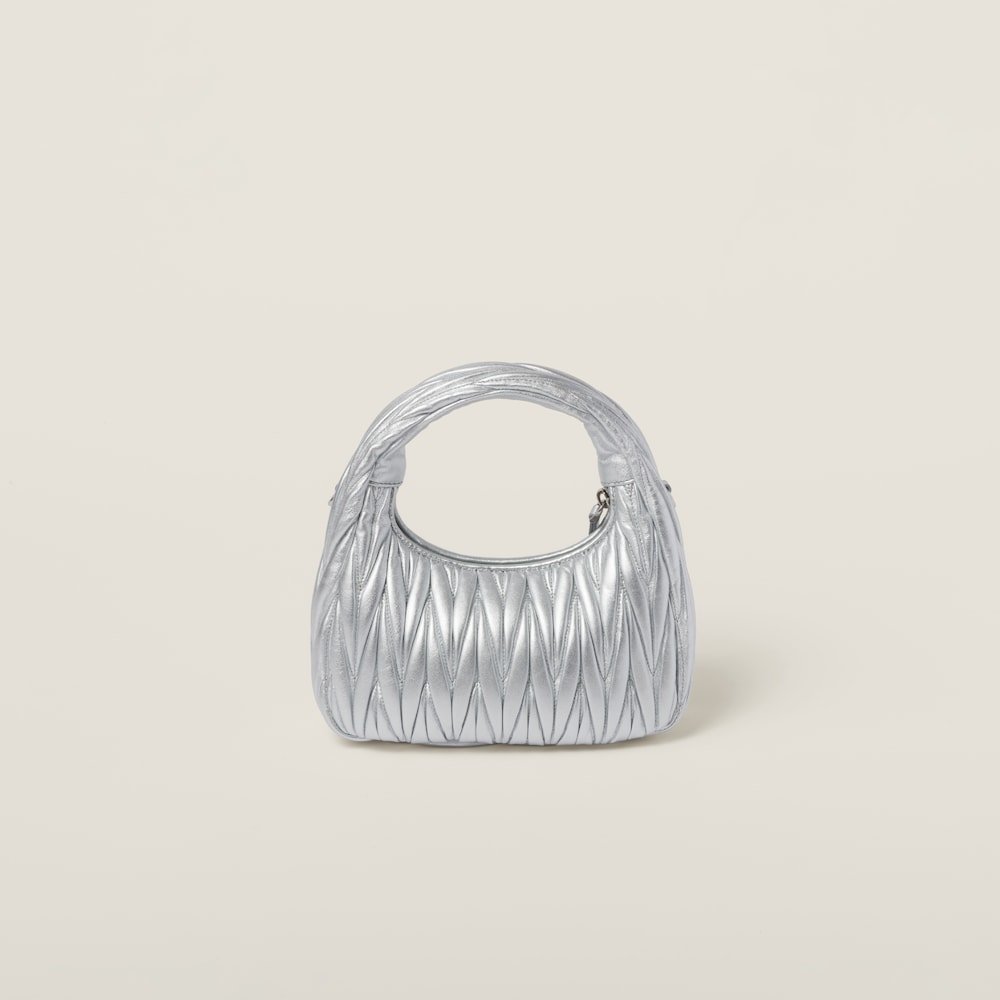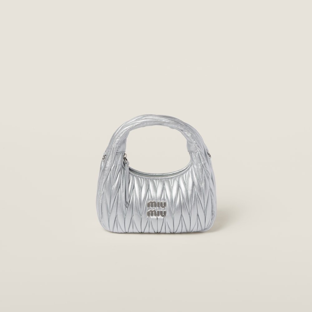 The Wander bag is reinterpreted season after season, becoming an iconic accessory of Miu Miu collections. Made of matelassé nappa leather, the bag is characterized by the sophisticated, three-dimensional effect created by the refined workmanship. The hobo shape, blending retro inspirations and contemporary elegance, becomes a new synonym of modern femininity.