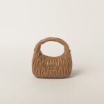 The Wander bag is reinterpreted season after season, becoming an iconic accessory of Miu Miu collections. Made of matelassé nappa leather, the bag is characterized by the sophisticated, three-dimensional effect created by the refined workmanship. The hobo shape, blending retro inspirations and contemporary elegance, becomes a new synonym of modern femininity.