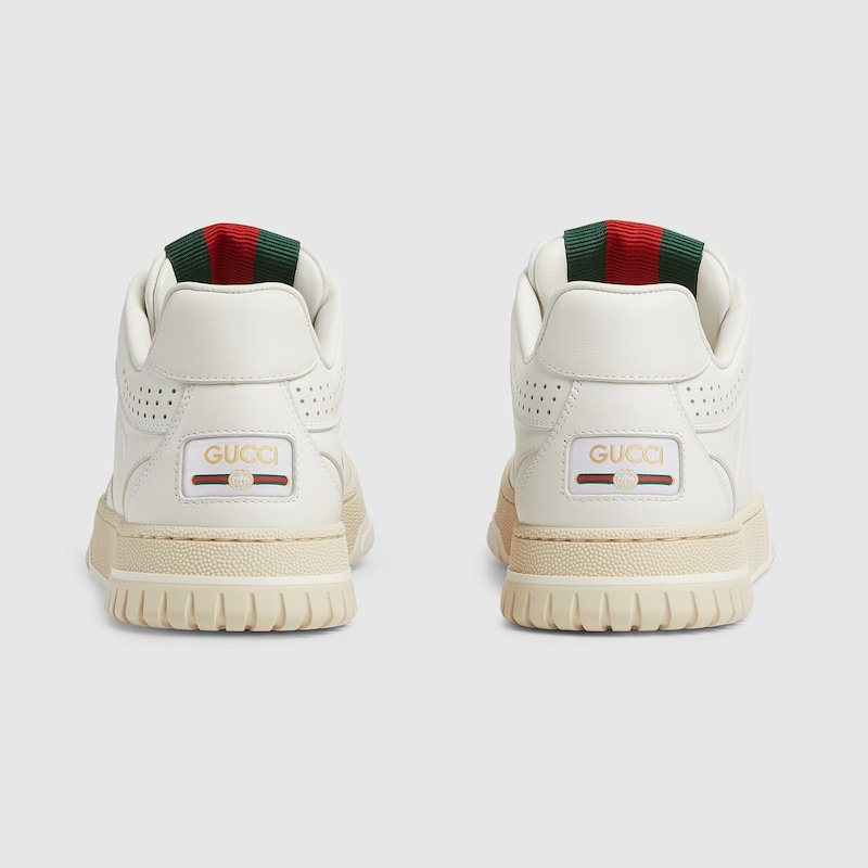 The Re-Web sees Gucci??s heritage stripes as a bold statement detail on a contemporary silhouette. This pair is crafted from white leather. Defined by multiple iconic details, this new sneaker takes center stage with the bold green and red Web tongue.