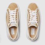 The iconic GG suede define this platform sneaker, highlighting one of the House’s most defining codes. The chunky silhouette is further elevated with a white canvas trim and a Gucci Tennis 1977 label across the tongue.