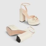 The signature Horsebit defines this pair of leather sandals. The high heel and the adjustable buckle closure complete the style.