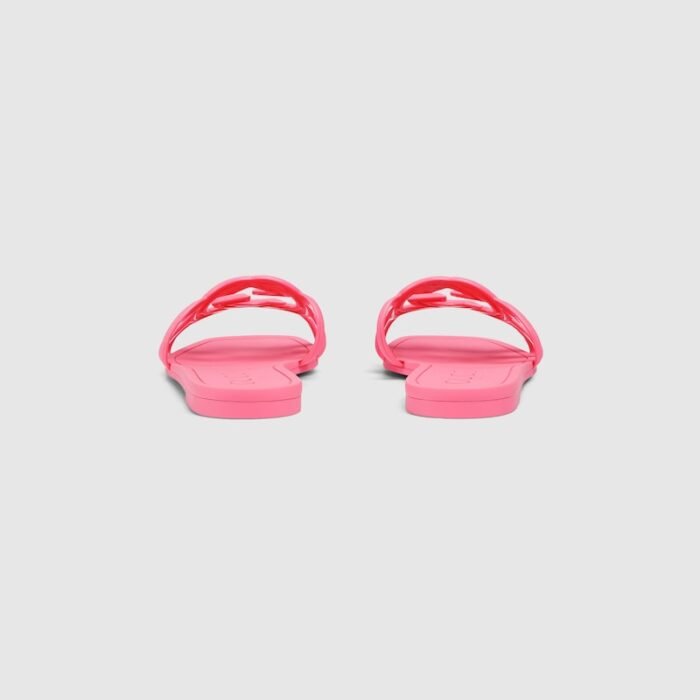 Emblematic codes of the House and refined patterns are reinterpreted in contemporary ways for the latest Gucci collection. This slide sandal appears in rubber with an Interlocking G cut-out enriching the style with a distinct logo feel.