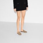 The line presents a?range of signature styles. The iconic Princetown slipper is defined by its elegant silhouette, refined materials and the classic Horsebit. This model is enhanced by the light gold-toned hardware.