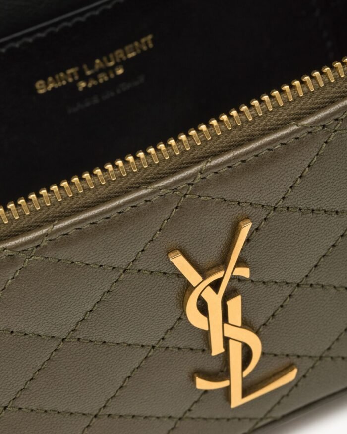 Zip-around vanity bag decorated with the CASSANDRE and diamond-quilted overstitching.