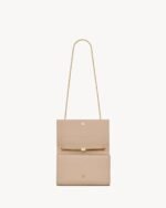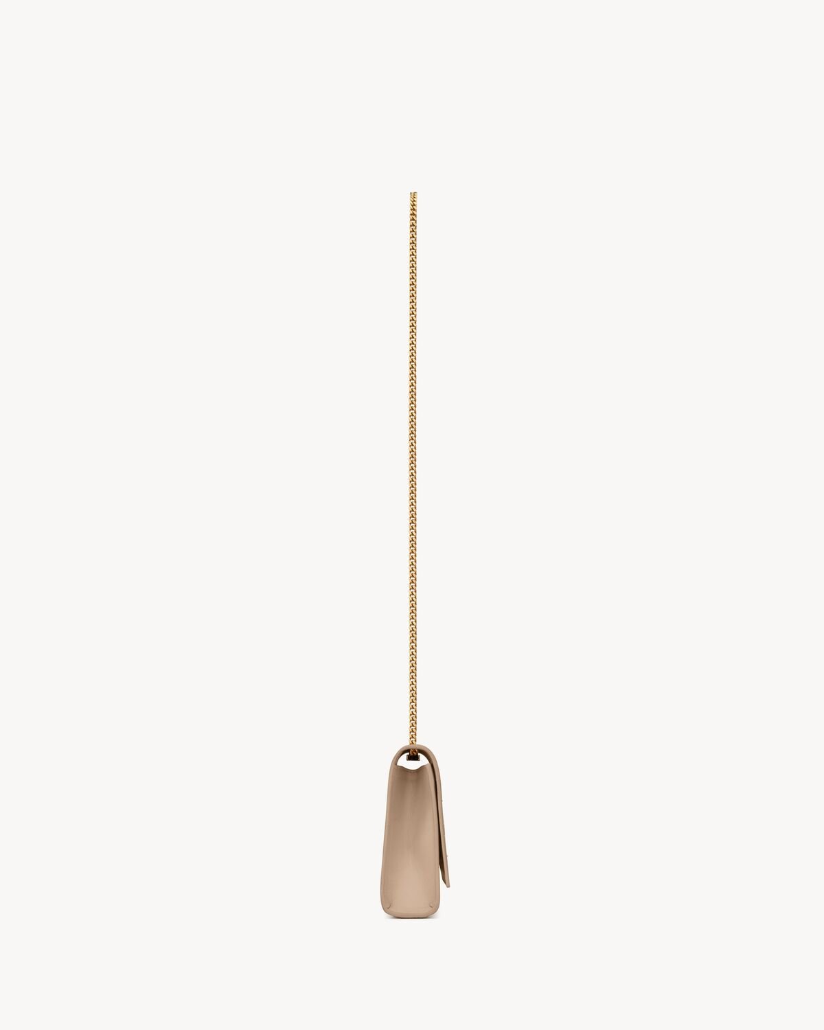 ICONIQUE KATE BAG IN GRAIN DE POUDRE EMBOSSED LEATHER, FEATURING THE CASSANDRE AND CURB CHAIN. WORN ON THE SHOULDER OR CROSSBODY.