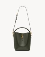 Bucket bag featuring the CASSANDRE hook closure, top handle and an adjustable and detachable shoulder strap.