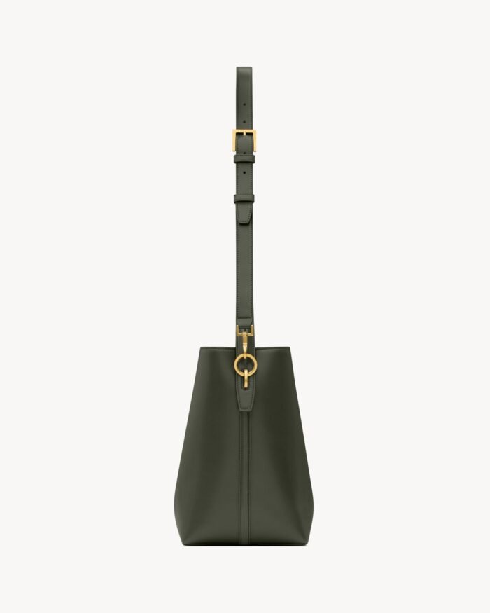 Bucket bag featuring the CASSANDRE hook closure, top handle and an adjustable and detachable shoulder strap.