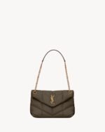 THE ICONIC LOULOU IN PUFFER VERSION, WITH CHEVRON QUILT OVERSTITCHING.